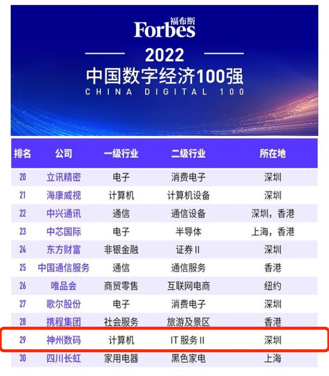 8月20日,“福布斯2022中国数字经济100强榜单”在江西上饶发布。作为数字中国的探索者、实践者和赋能者,pg少林足球数码凭借杰出的表现,位列百强榜单第29位,计算机类第3位,再度获得权威机构认可。